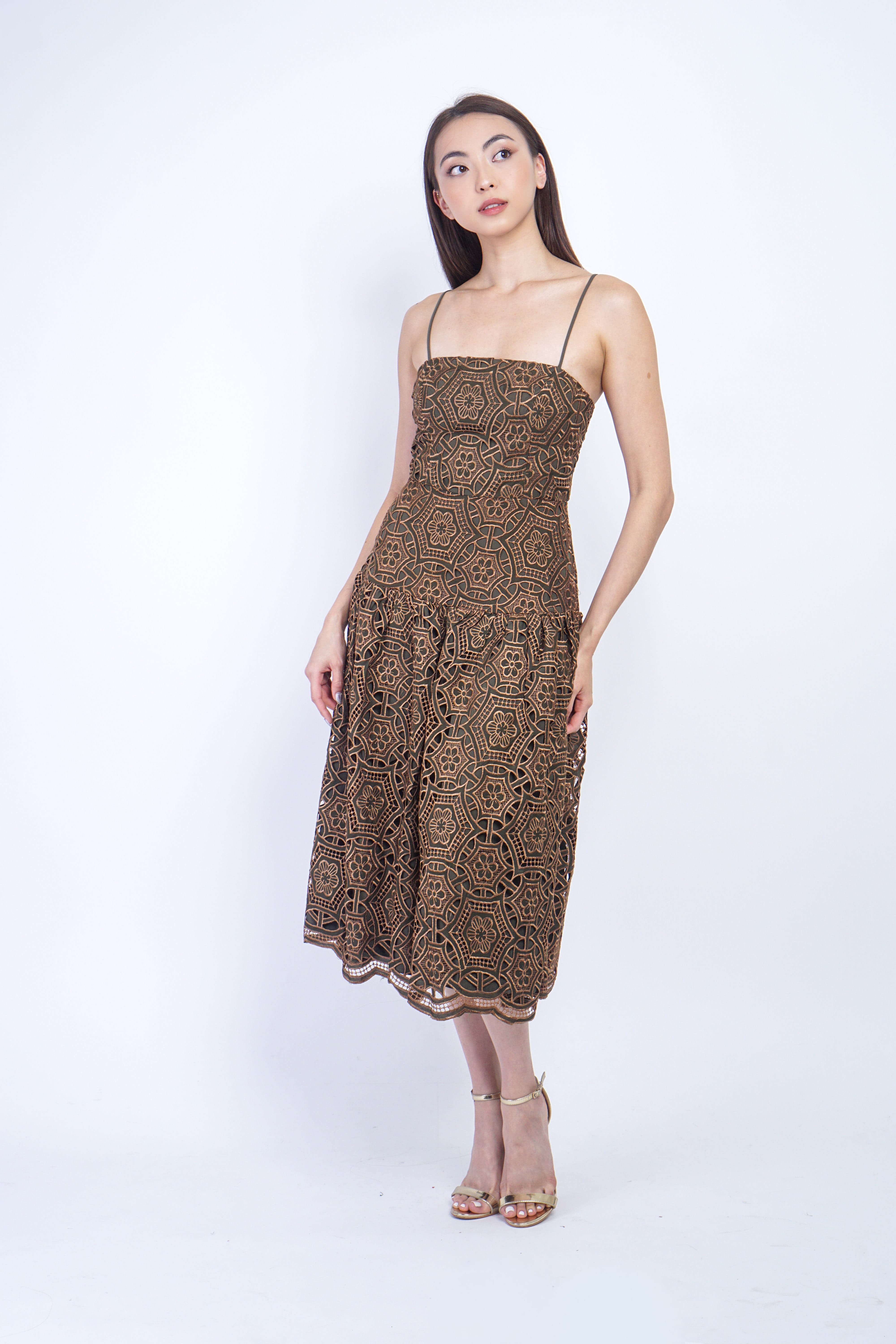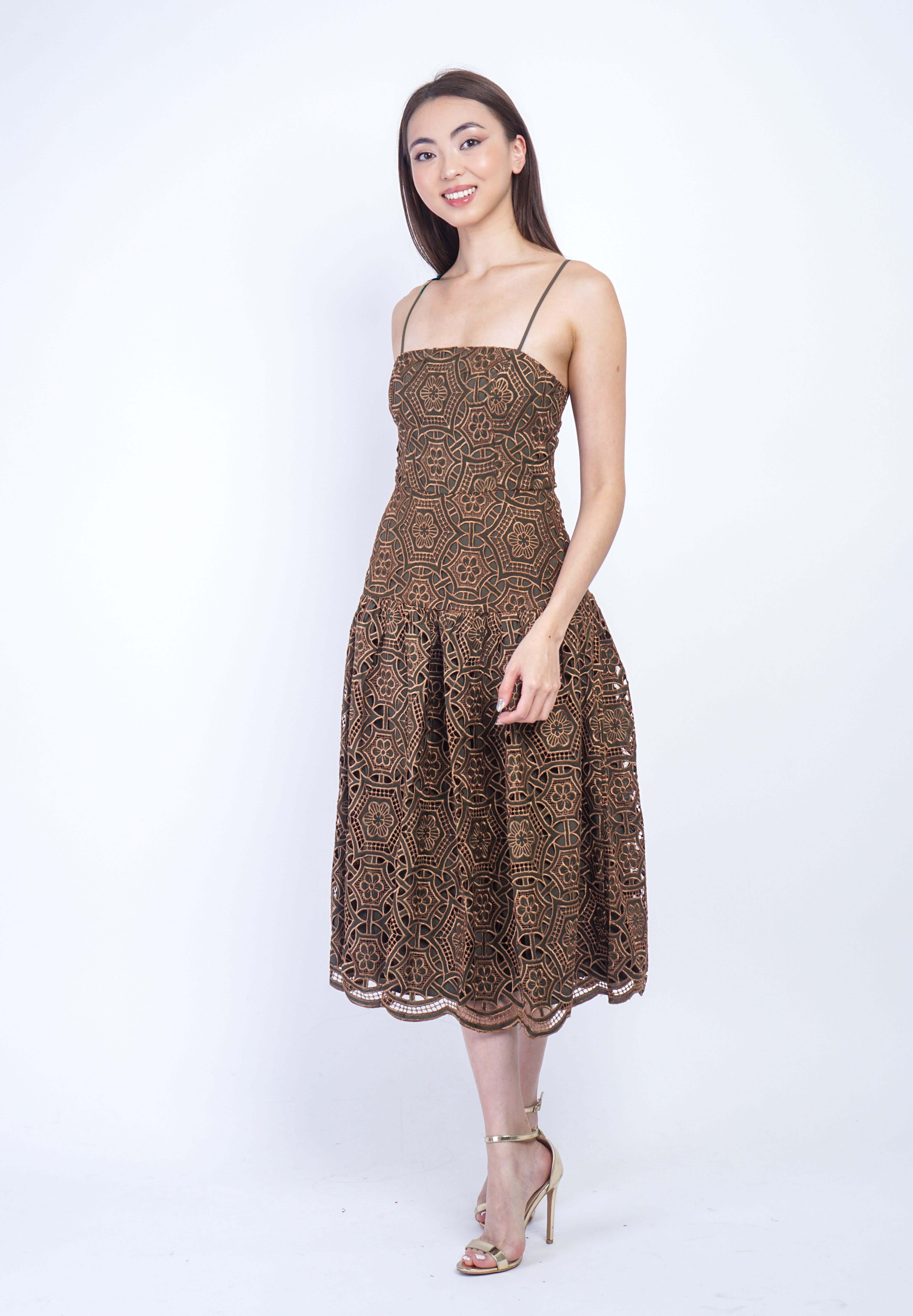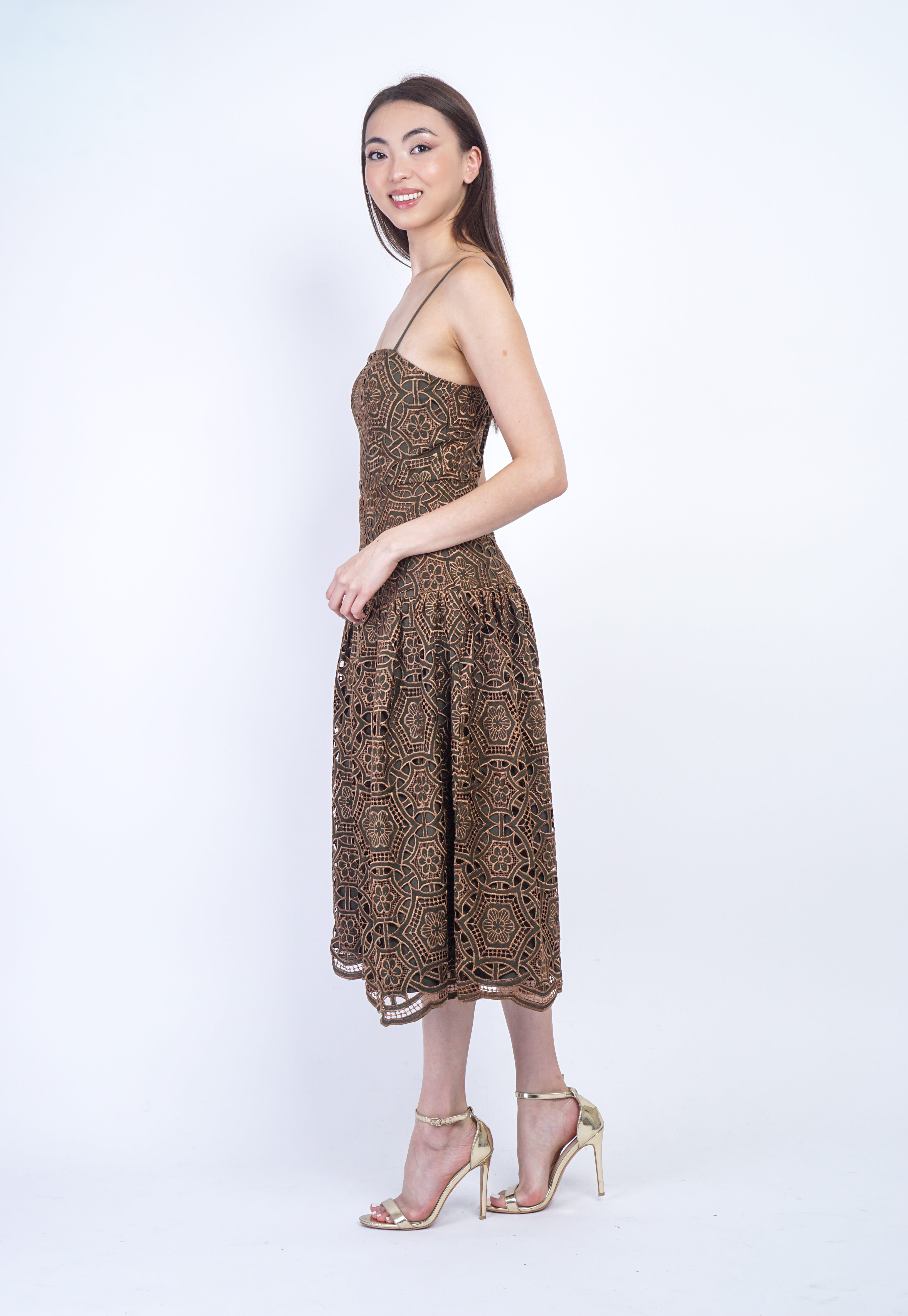 • Bronze and Olive Scallop Hem Sleeveless Dress